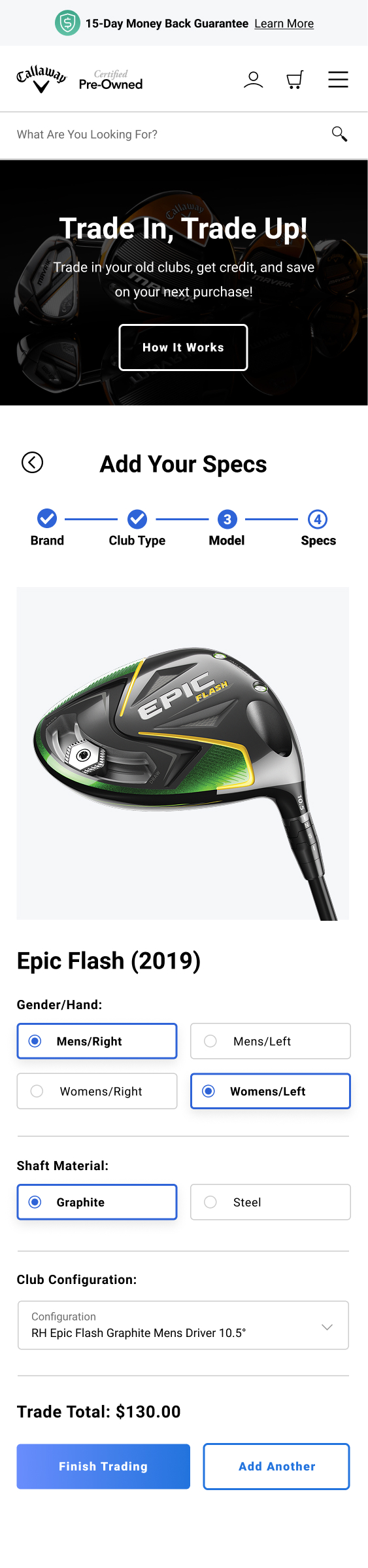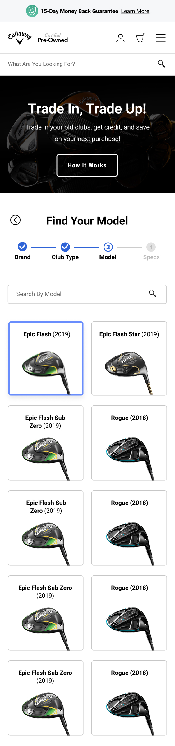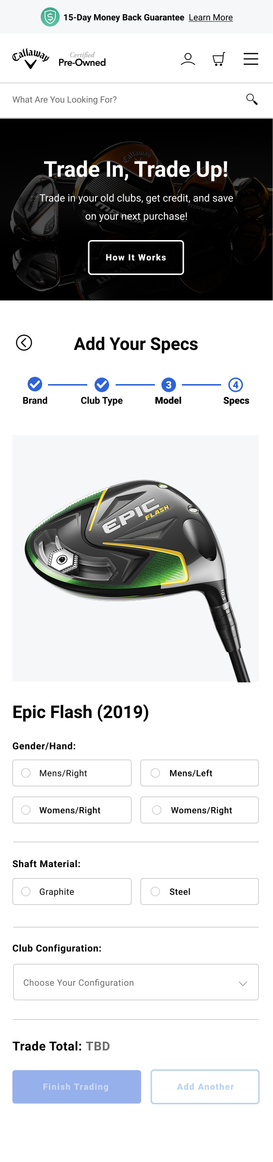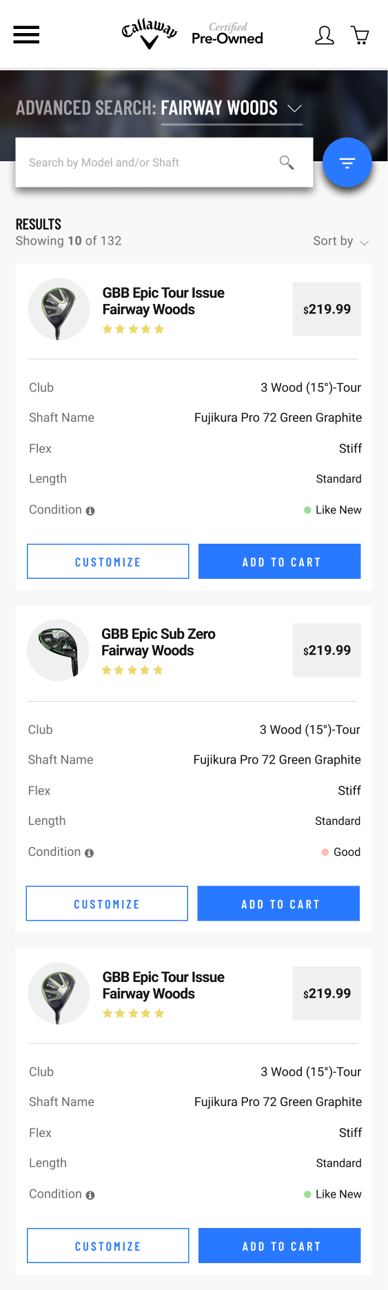During my time at Callaway Golf, I was the lead UX designer of their Pre-Owned brand. In this role, I was responsible for modernizing their e-commerce platform, enhancing user experience, and driving increased sales through enhanced mobile design.