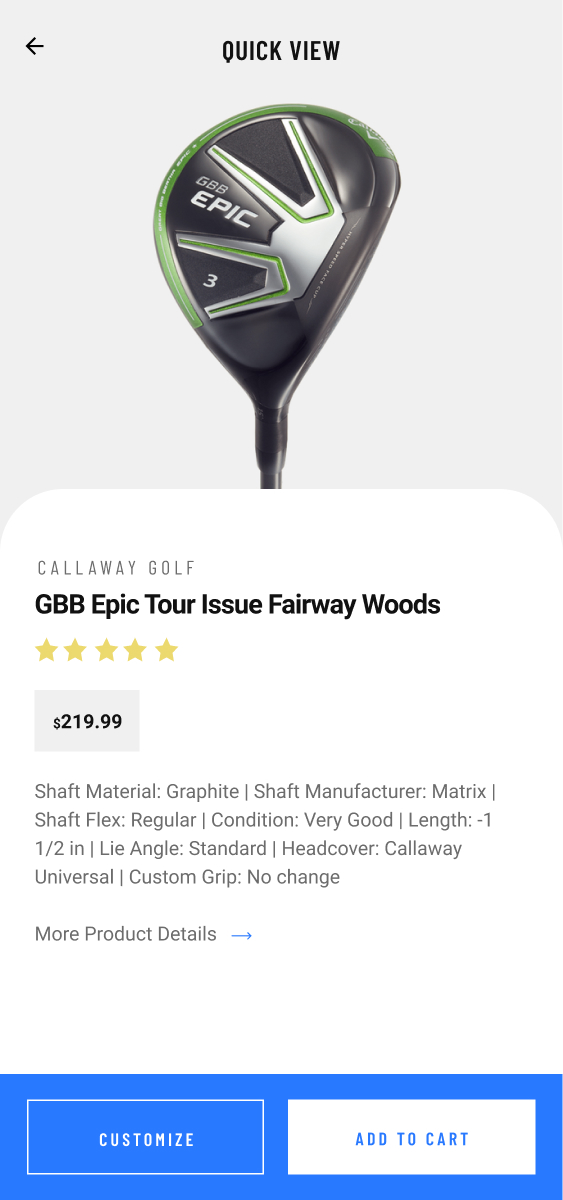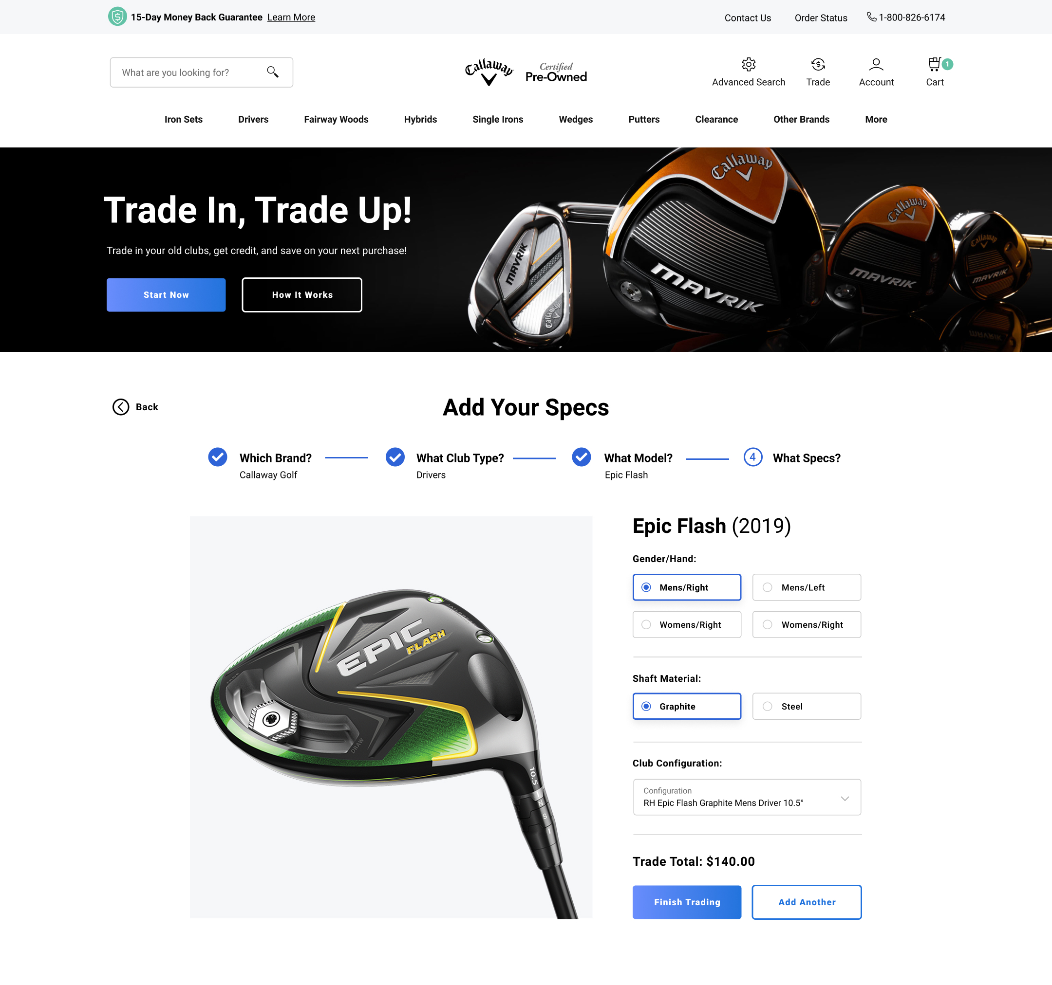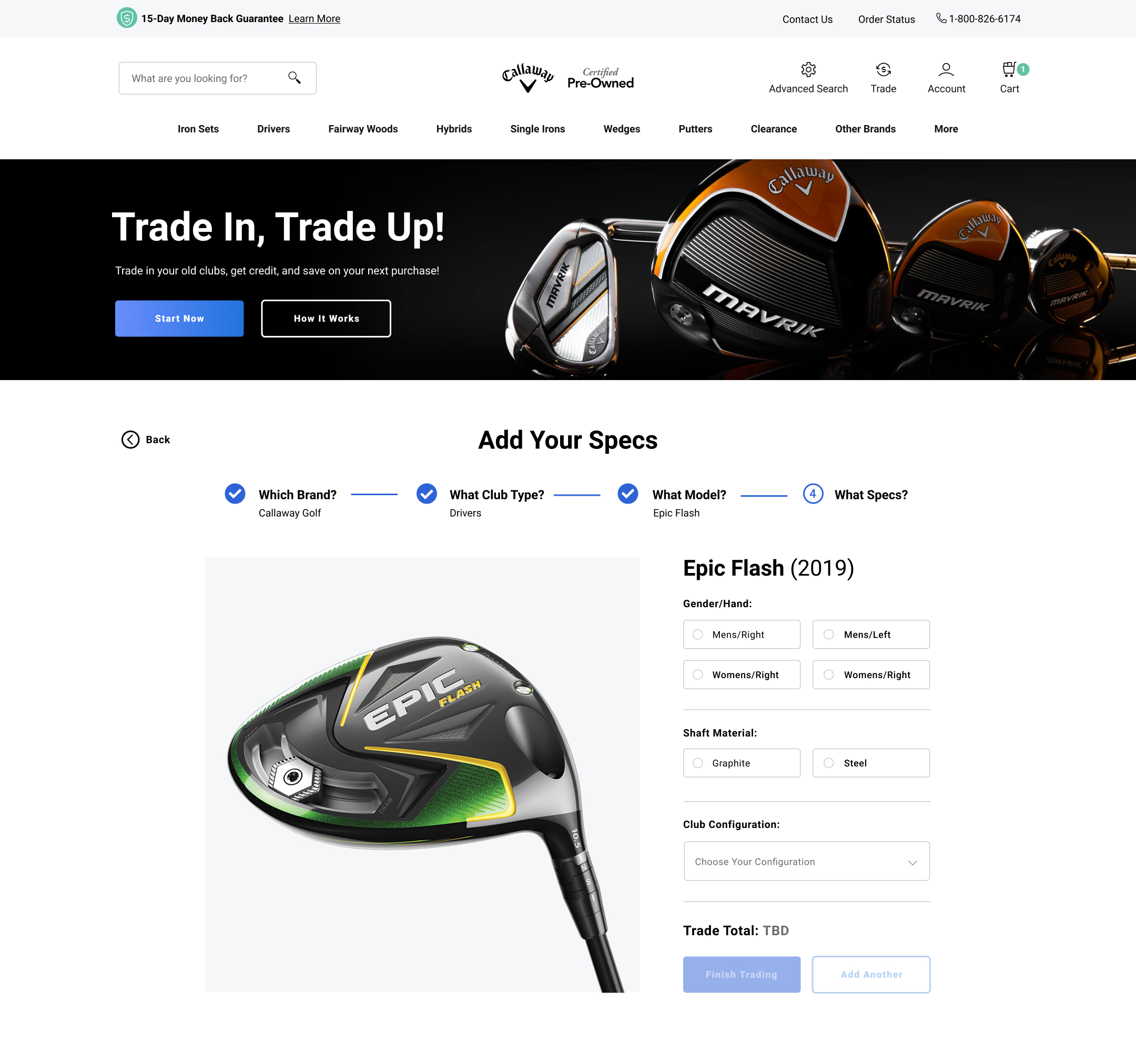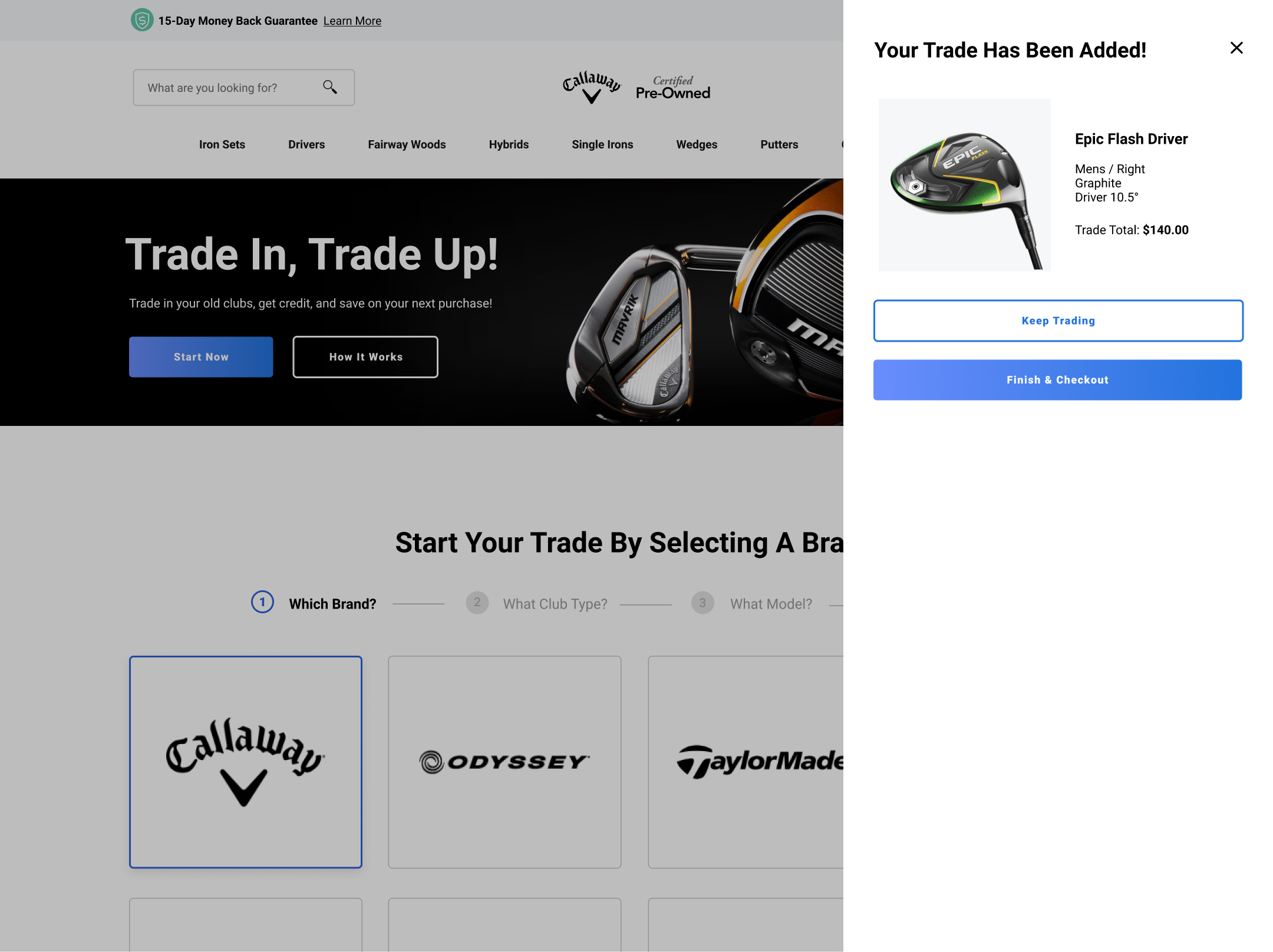 During my time at Callaway Golf, I was the lead UX designer of their Pre-Owned brand. In this role, I was responsible for modernizing their e-commerce platform, enhancing user experience, and driving increased sales through enhanced mobile design.