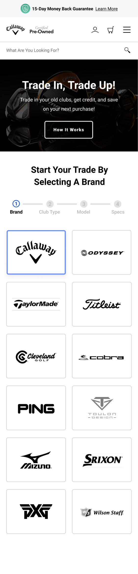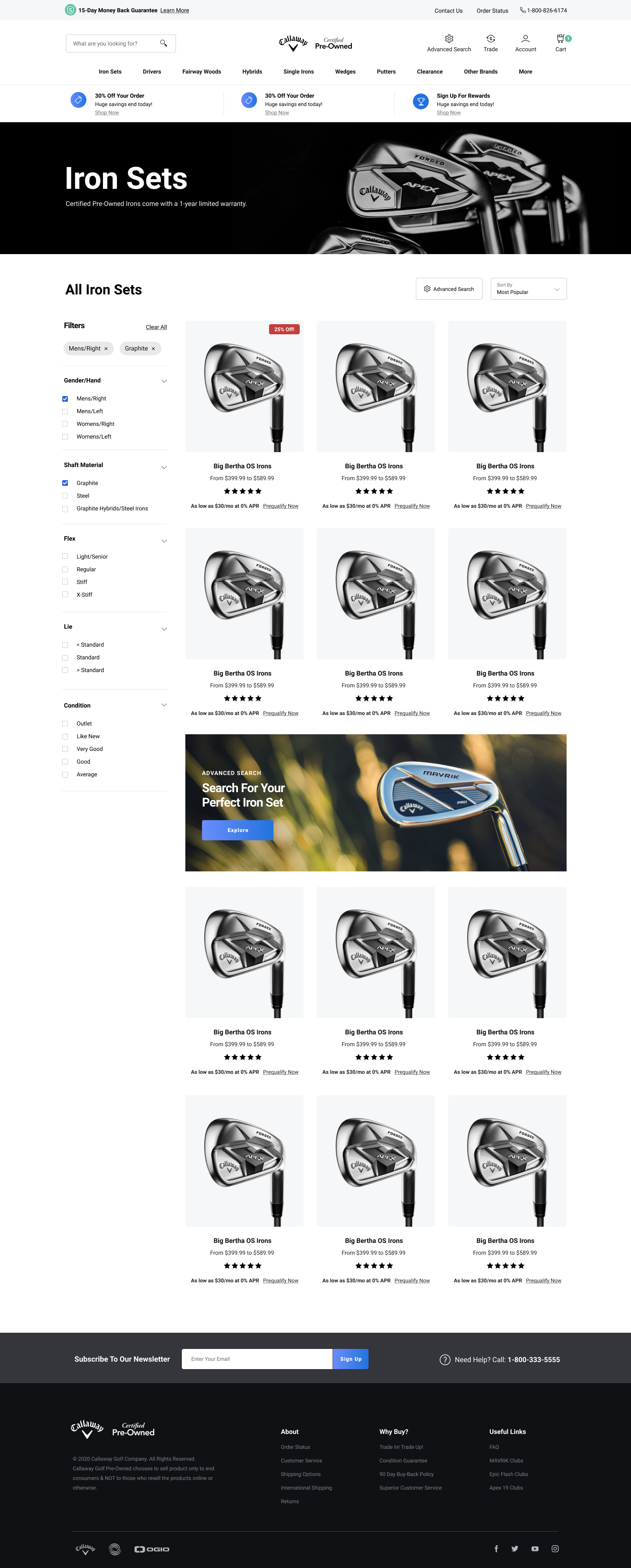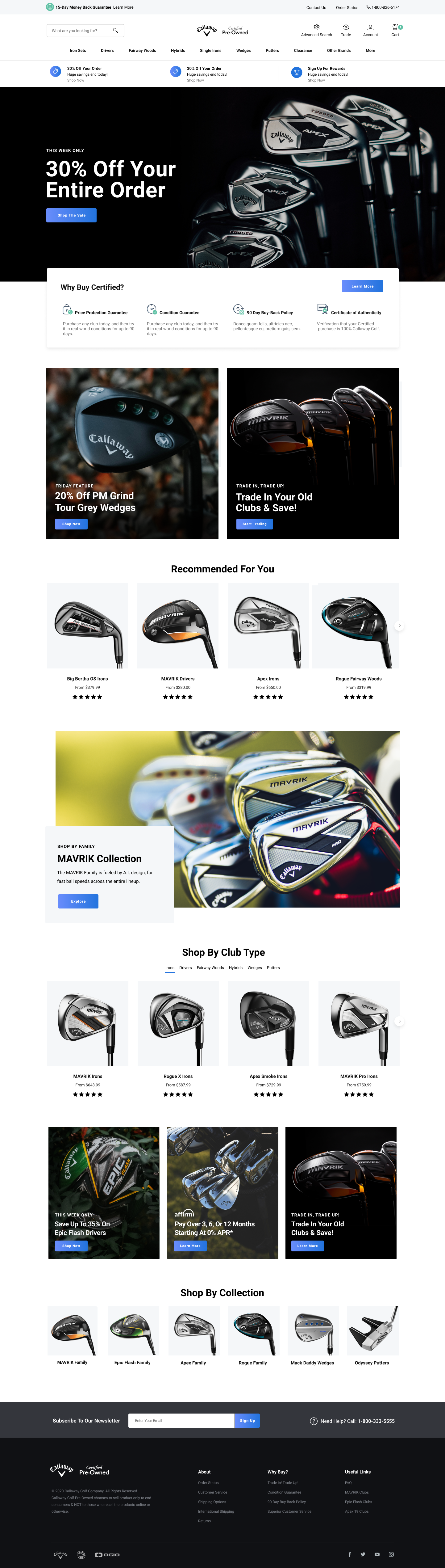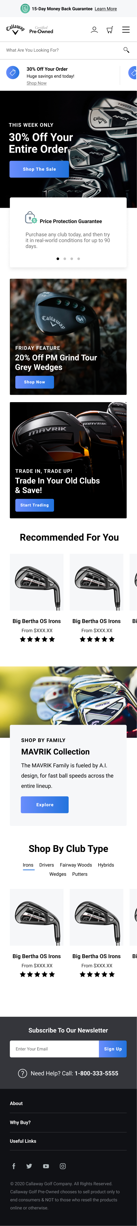 Redesigning the e-commerce experience for Callaway Golf's Pre-Owned brand, driving increased sales through enhanced mobile design.
