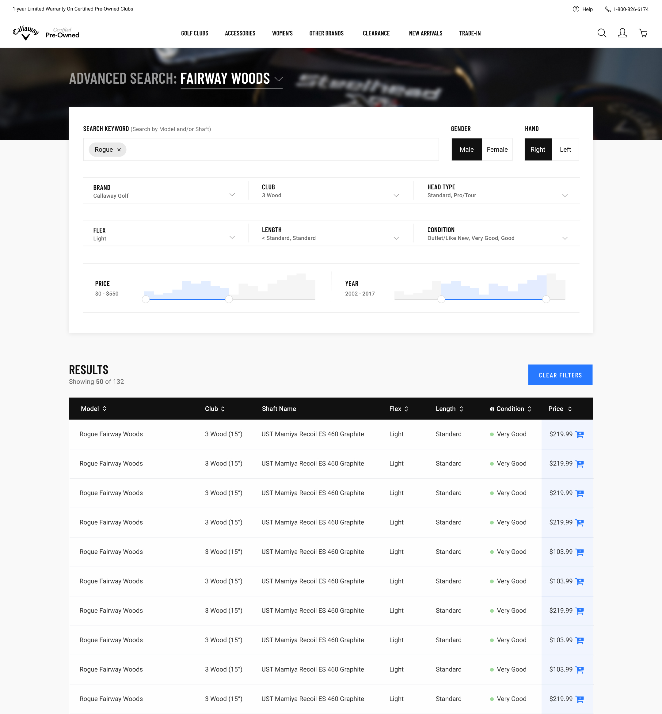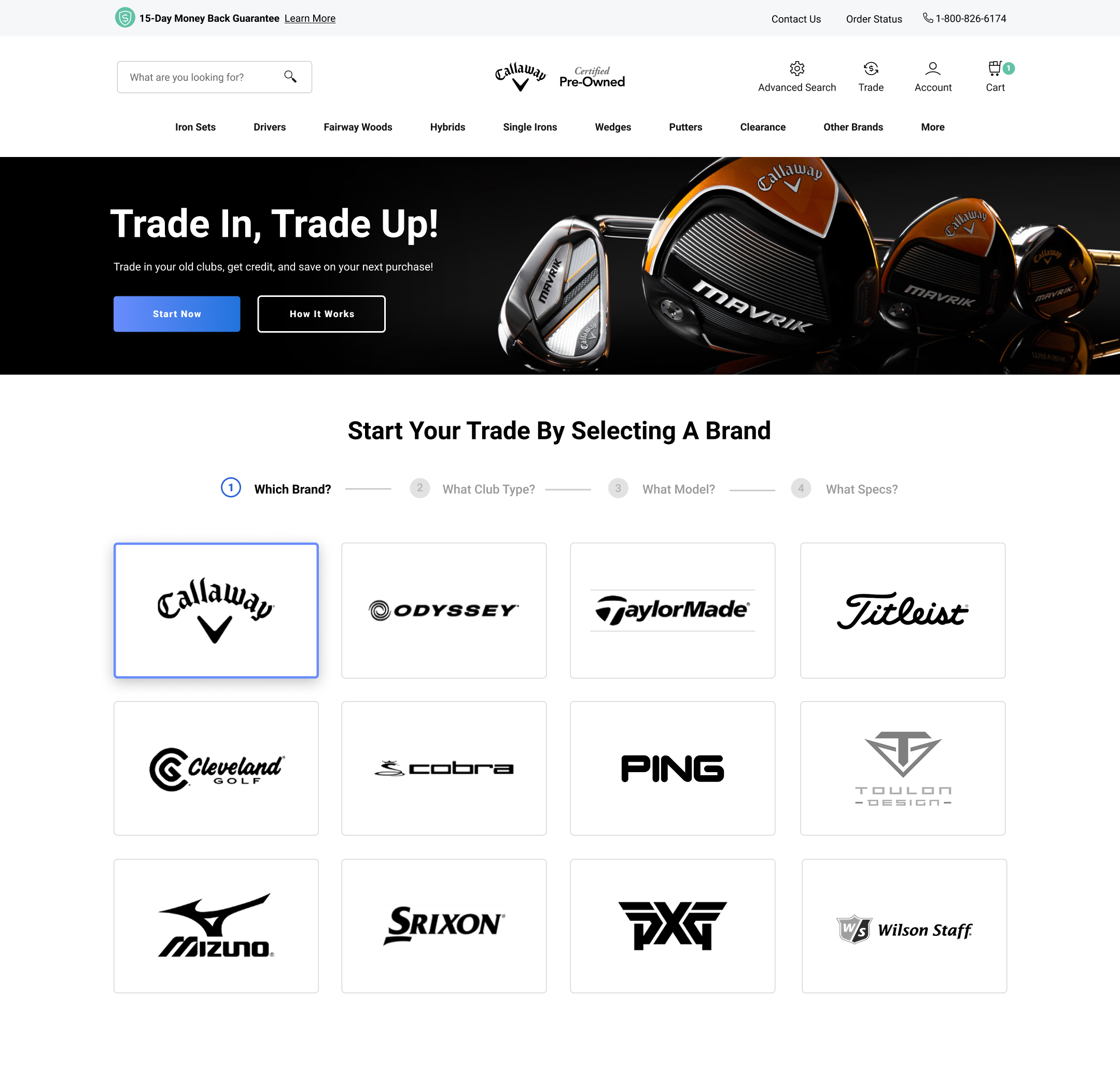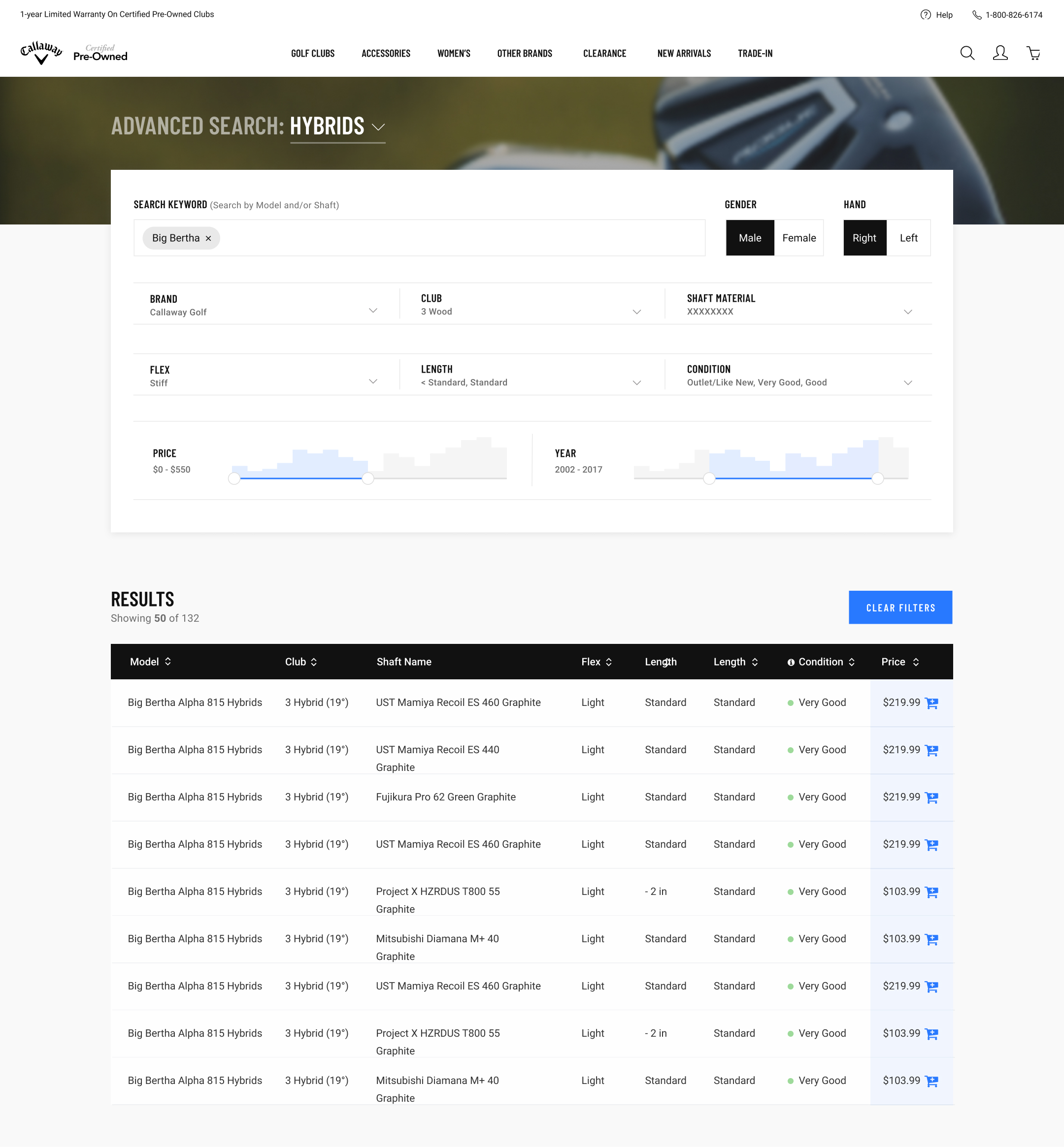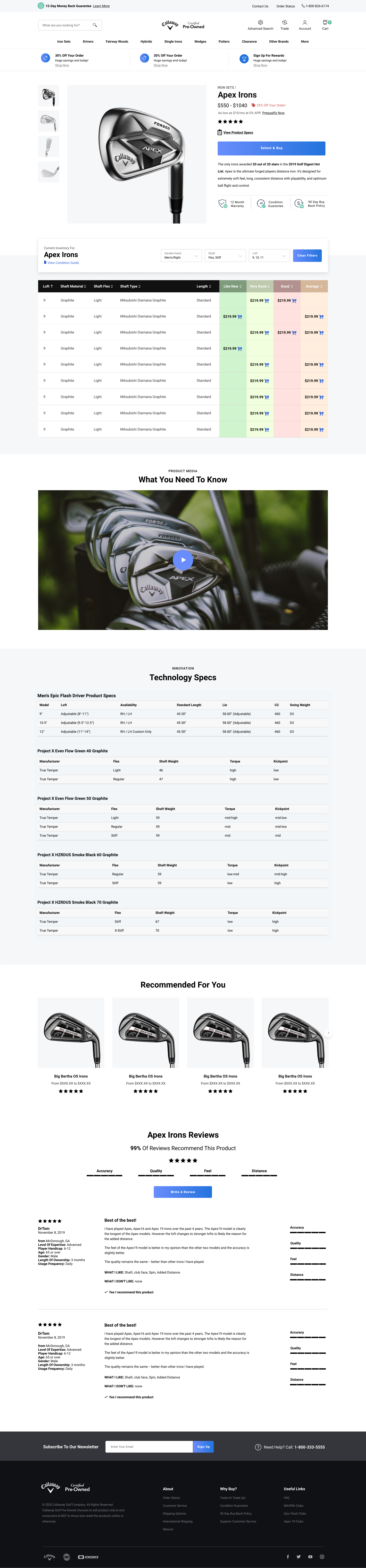 Redesigning the e-commerce experience for Callaway Golf's Pre-Owned brand, driving increased sales through enhanced mobile design.