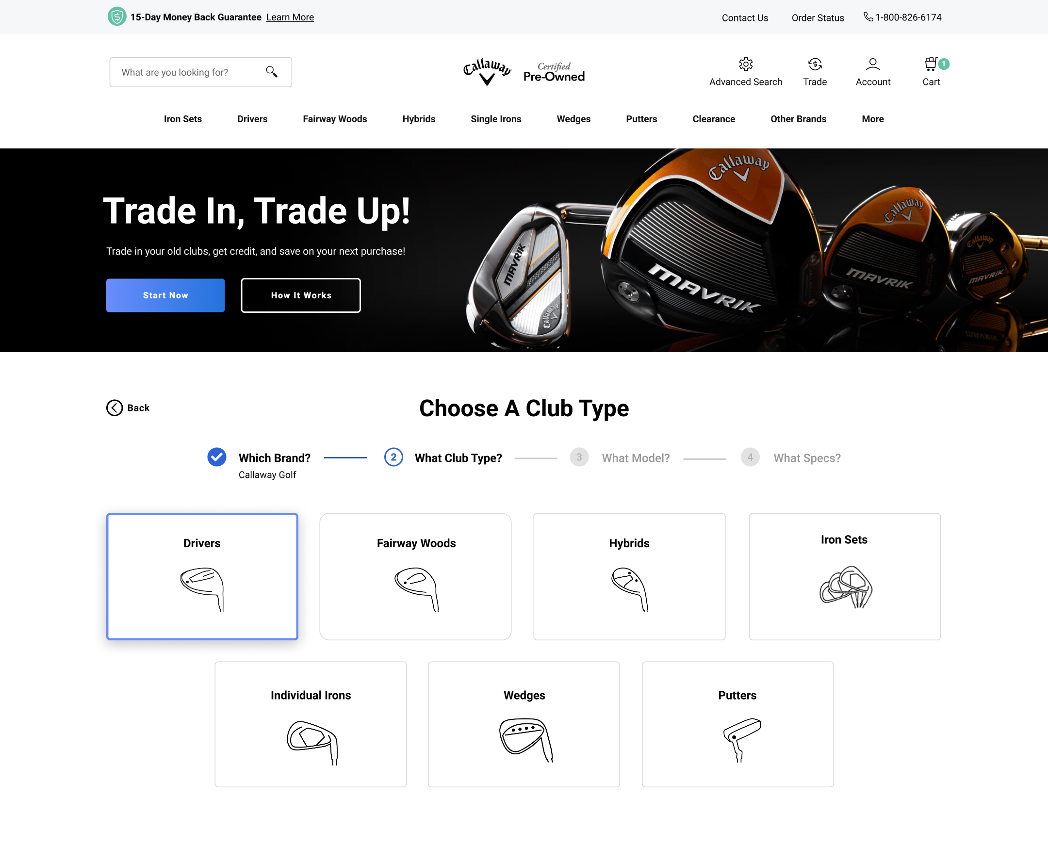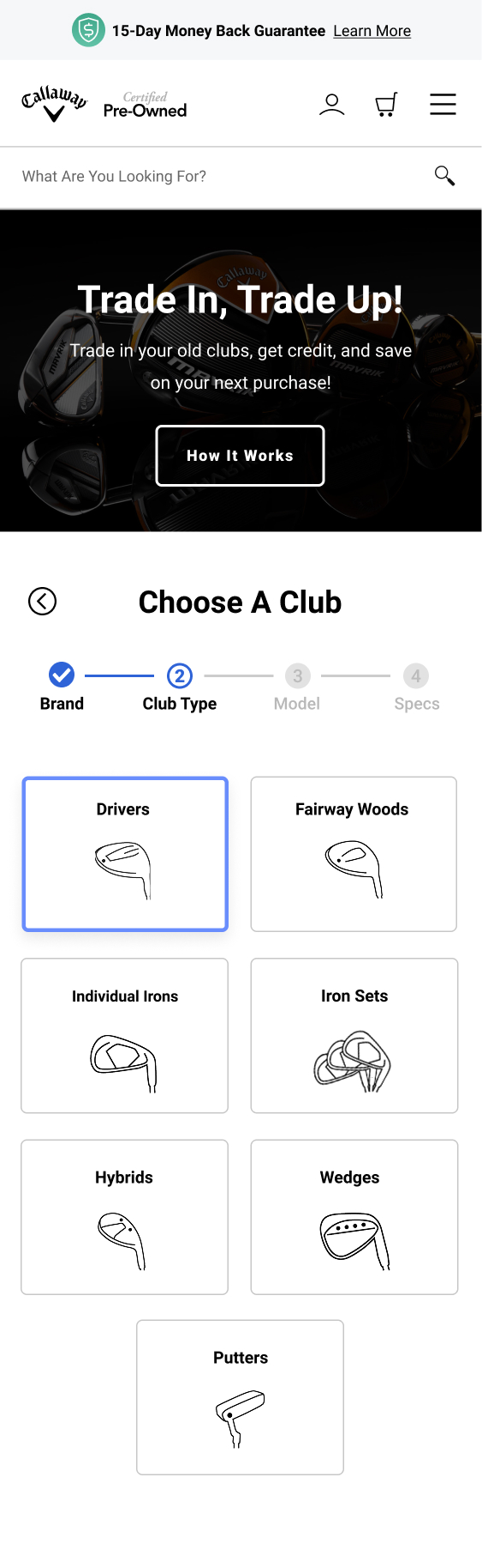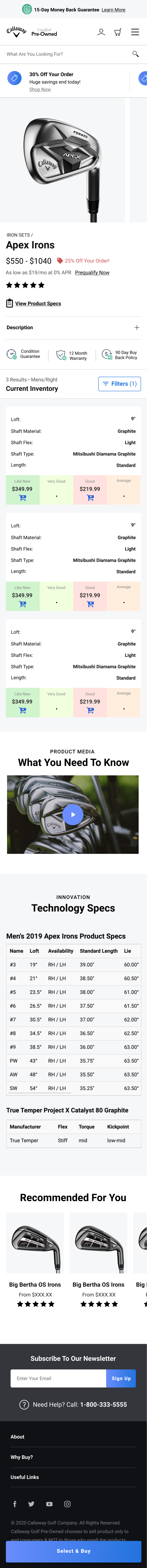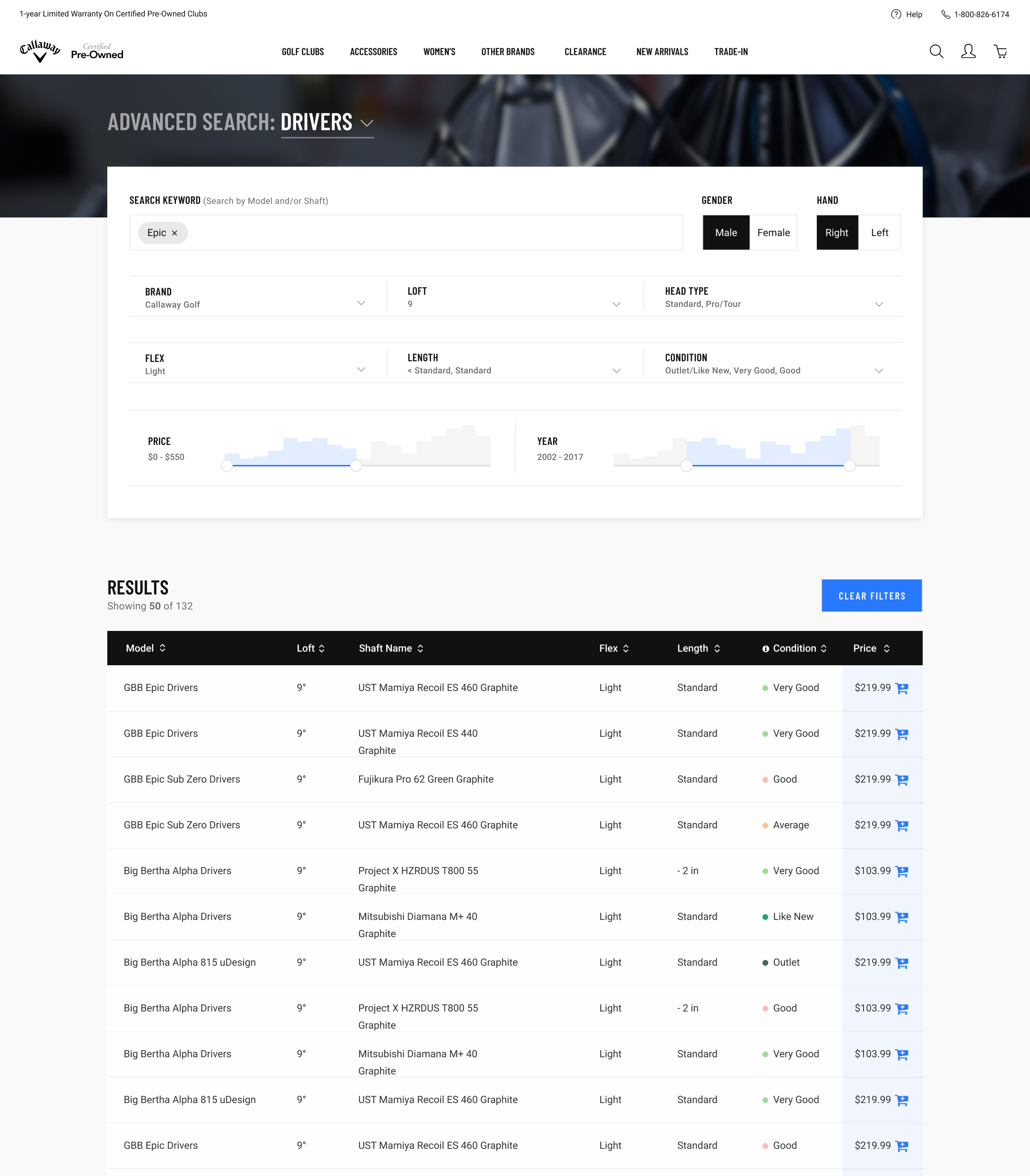 Redesigning the e-commerce experience for Callaway Golf's Pre-Owned brand, driving increased sales through enhanced mobile design.