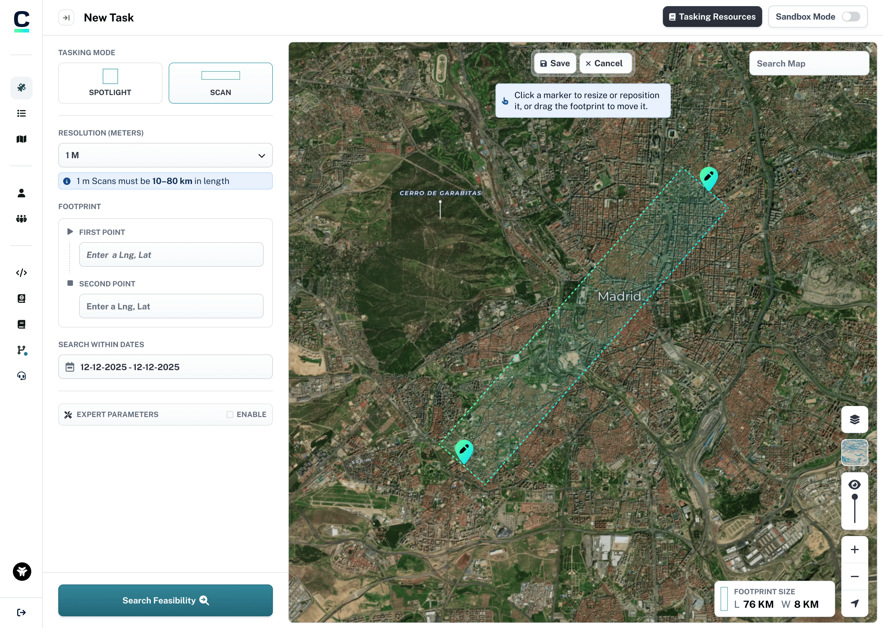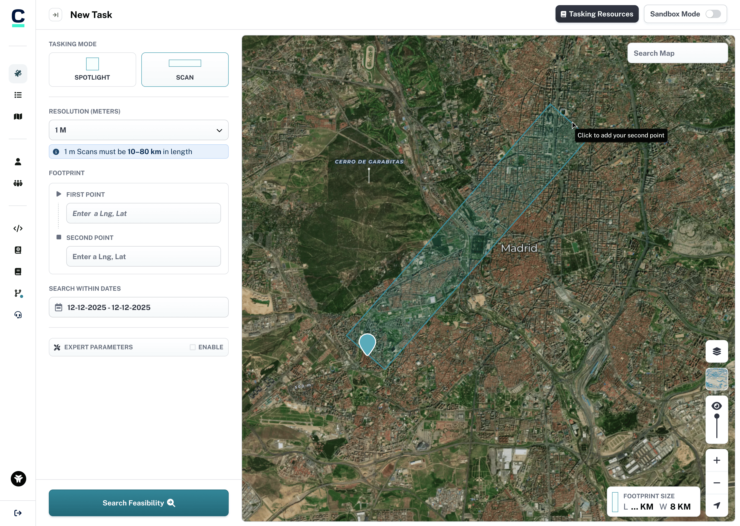 The core insight: users needed a simple start-to-end point drawing interaction that felt natural on a map interface while providing the precision required for satellite tasking.