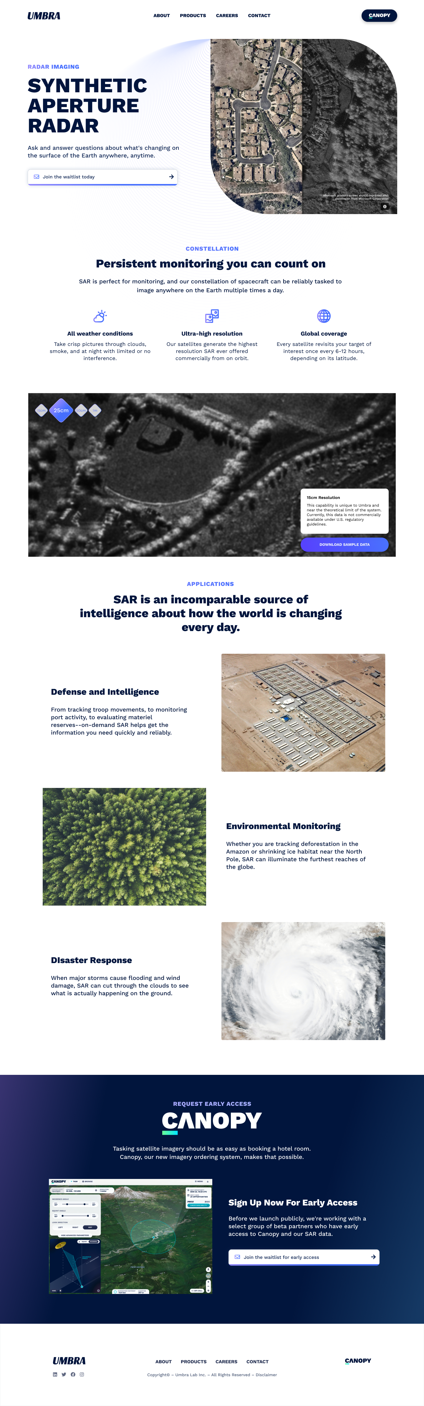 Umbra Space, a leading provider of space imaging, set out to make satellite data truly accessible and on‑demand. Canopy was created to let users get imagery without the antiquated hurdles of phone calls and spreadsheet orders.